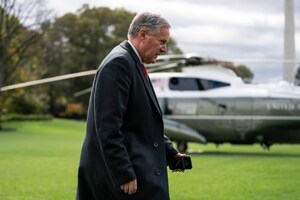 Christian musician Sean Feucht of California have a prays along with Sen. Josh Hawley, R-Mo., left, during a rally at the National Mall in Washington, Sunday, Oct. 25, 2020. (AP Photo/Jose Luis Magana)