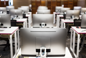 An illustration of a multiple choice exam with half the questions having crashed with a mac beachball icon