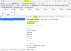 Screenshot of Chrome's developer's tools showing what talkspace.com sent to Facebook