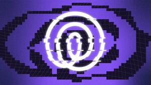 Illustration of Life360's logo, with an electronic lag effect. The background shows openings of a warped grid.