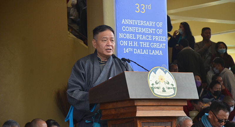 Sikyong Penpa Tsering of CTA reading the statement of Kashag on Human Rights Day on December 10, 2022. Photo: TPI