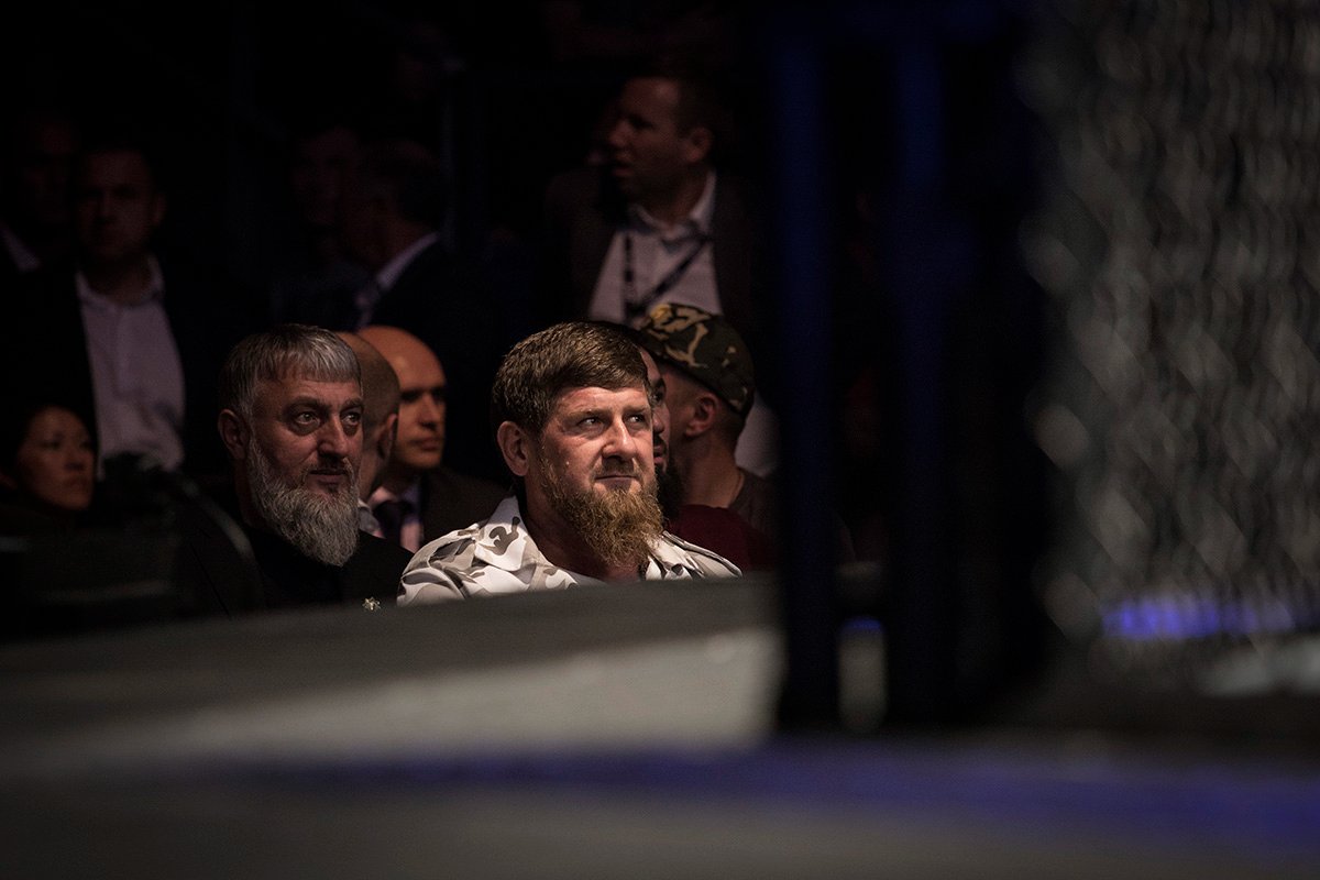 Адам Делимханов и Рамзан Кадыров в первом ряду во время самого первого турнира UFC в России. Сентябрь 2018 года. Фото: Влад Докшин