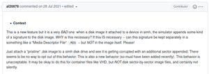 This is a new feature but it is a very BAD one: when a disk image it attached to a device in simh, the simulator appends some kind of a signature to the disk image.