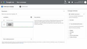 A screenshot of Google Ads portal returning a partial block. Note the single video suggestion without metadata.